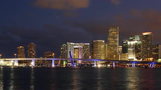 Usa night light sunset miami city downtown panorama 4k time lapse florida