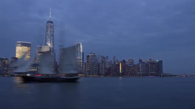 > jersey city pier new york manhattan night sunset panorama 4k time lapse usa