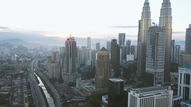 4k b-roll cinematic footage of drone flying above Kuala Lumpur city skyline. Kuala Lumpur is a capital city of Malaysia, with its famous Petronas Twin Towers.