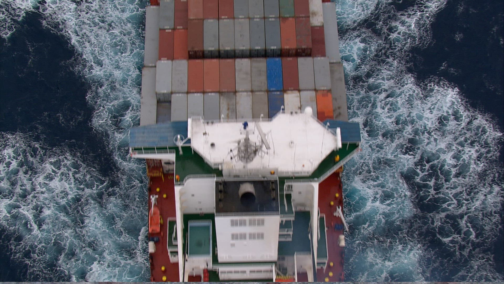Cargo ship with containers floating on the sea. Cargo ships in the Bay of Manila. Large container ship in the sea, blue sky and clouds. 4K video. Philippines, Manila.