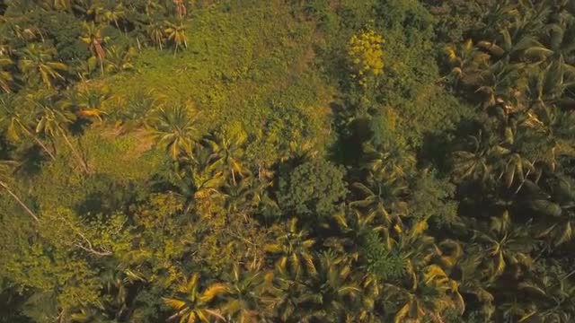Mountains with rainforest covered with green vegetation and trees on the tropical island, landscape. Aerial view: Mountains and hills with wild forest. Hillside rainforest and jungle. Philippines, Cebu. 4K video. Aerial footage.
