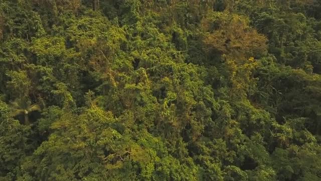 Mountains with rainforest covered with green vegetation and trees on the tropical island, landscape. Aerial view: Mountains and hills with wild forest. Hillside rainforest and jungle. Philippines, Catanduanes. 4K video. Aerial footage.