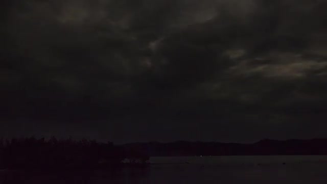 Moonlit time lapse of eery clouds over water, wide