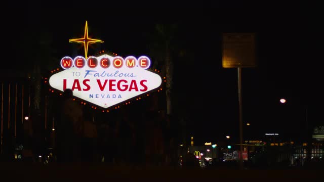 790600 - Las Vegas sign static with tourists