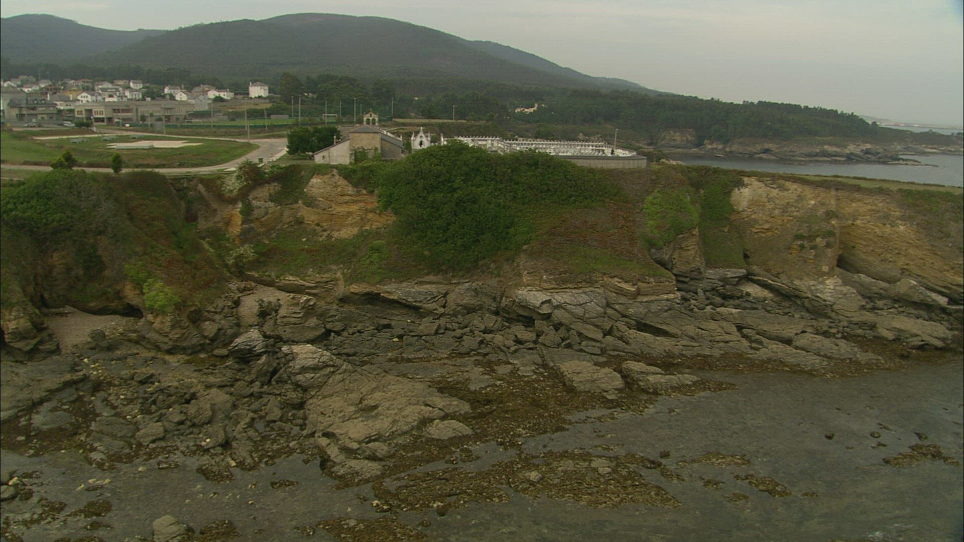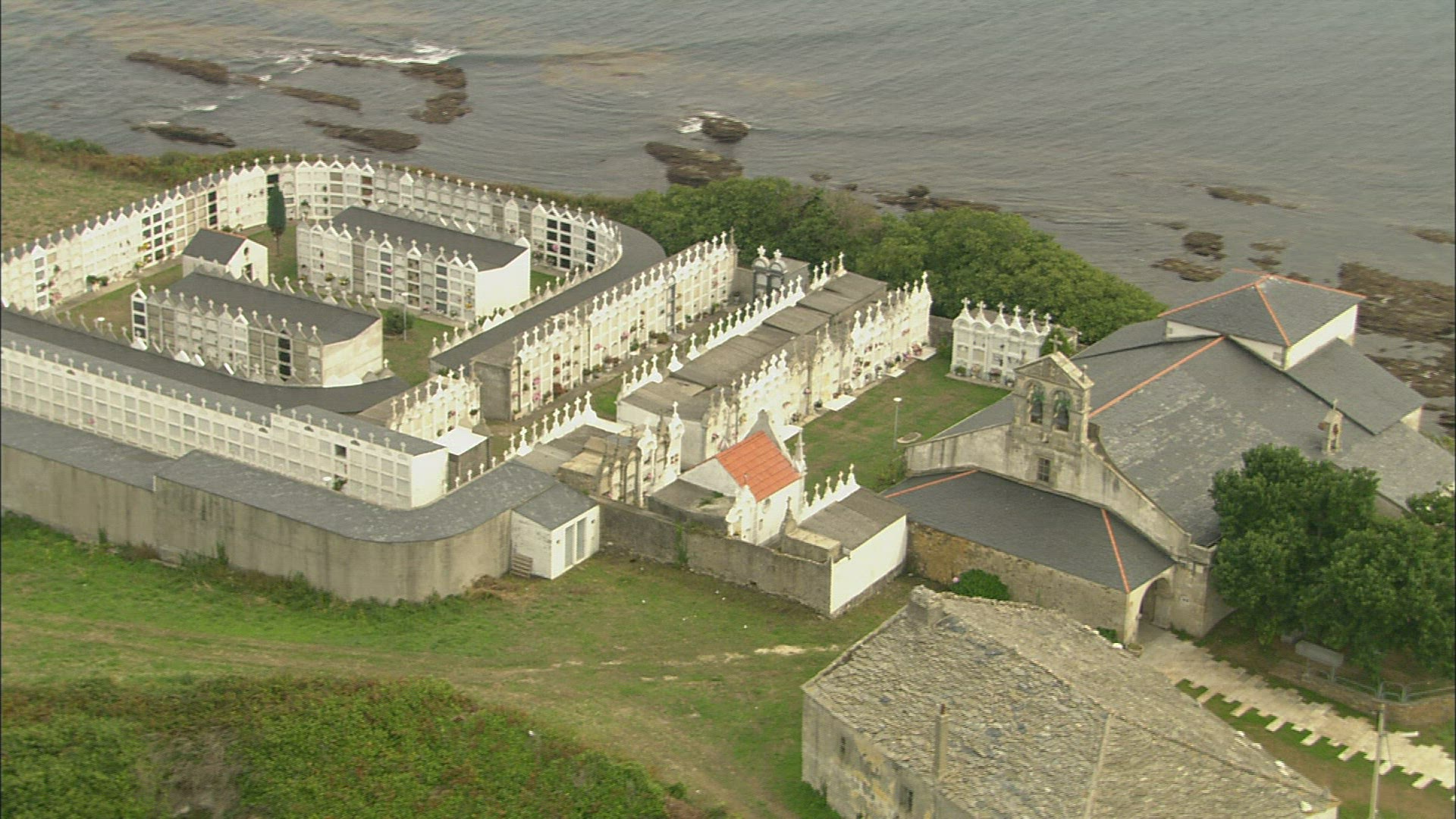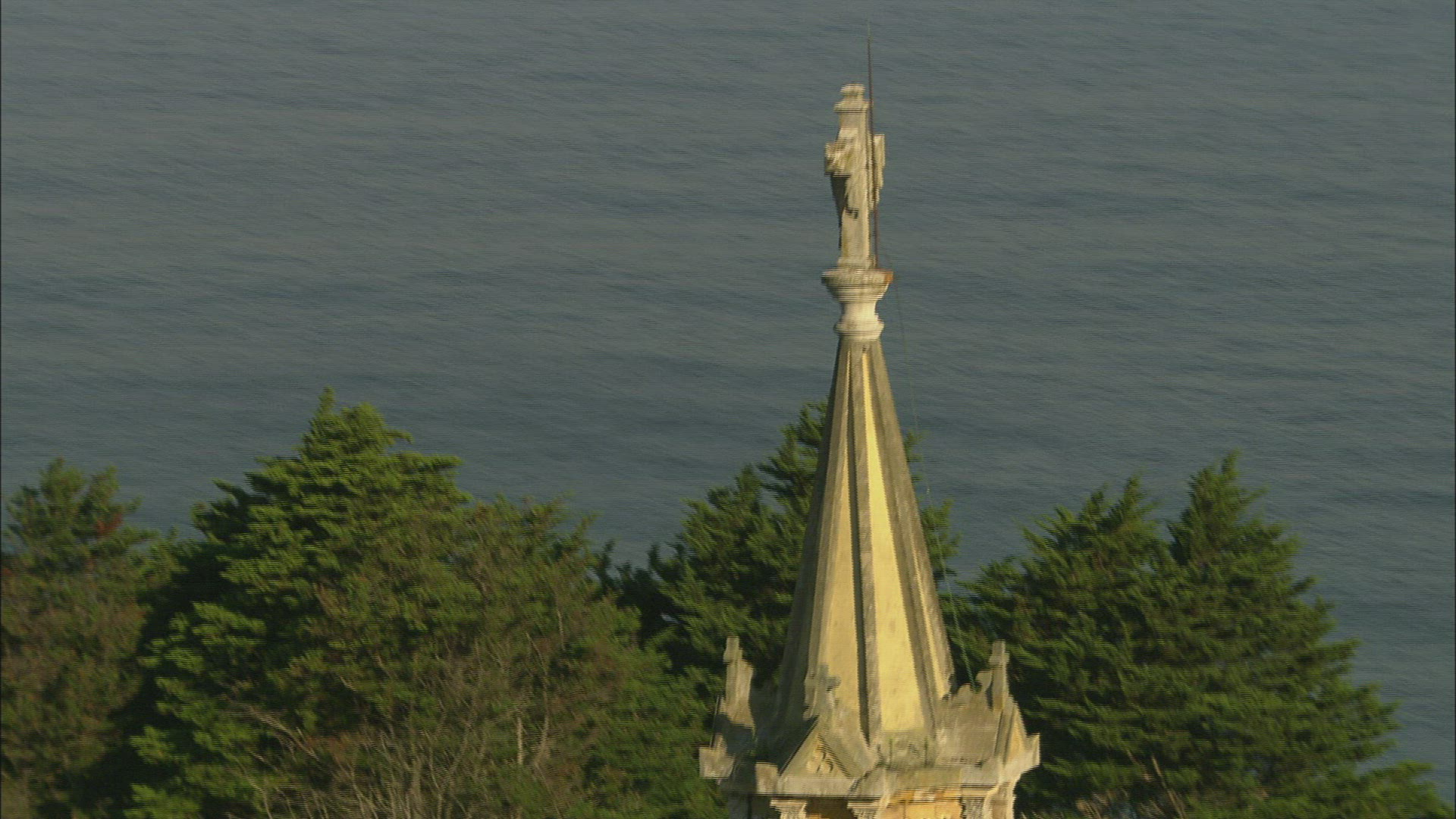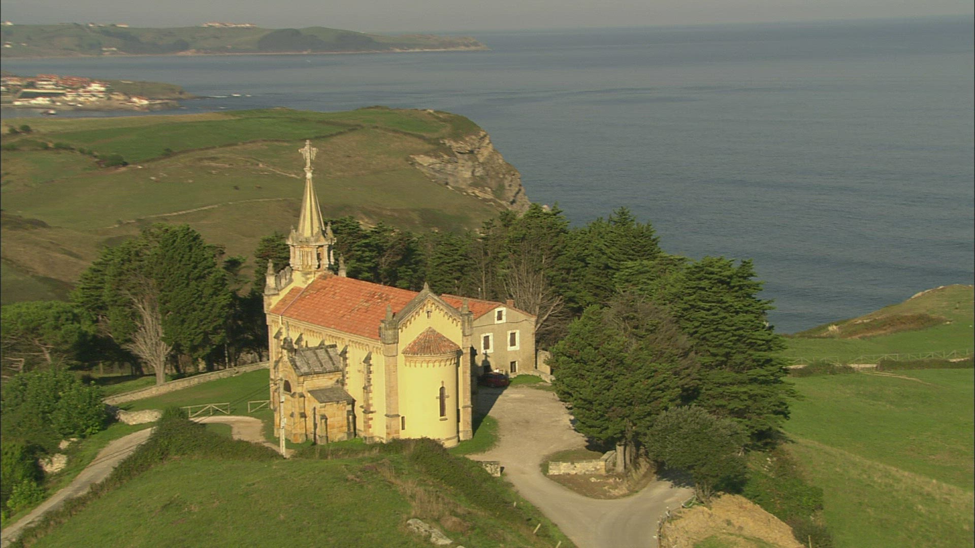 Circling aerial shot around a church in Calpe