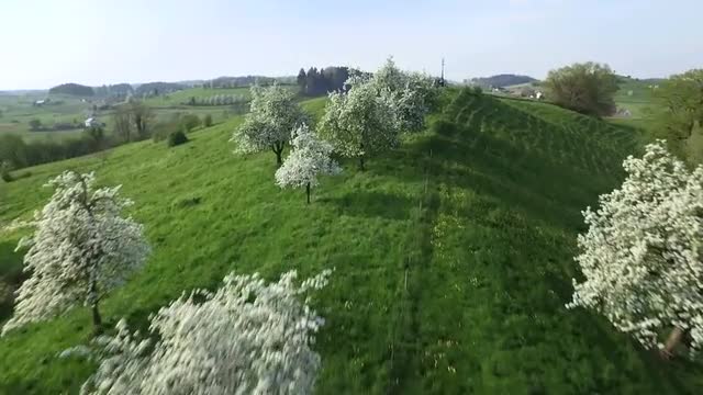 Aerial view of the landscape at lake constance during apple blossom