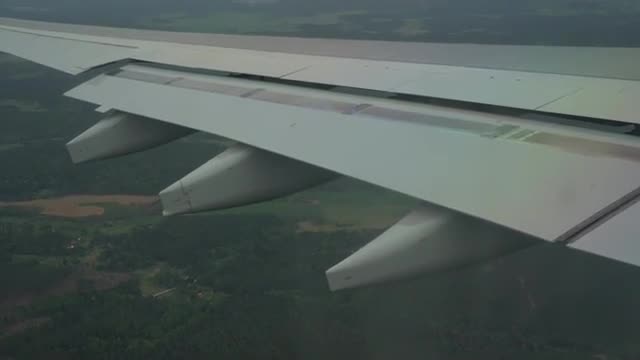 airplae wing seen from inside plane, Close to landing at Arlanda Airport Stockholm