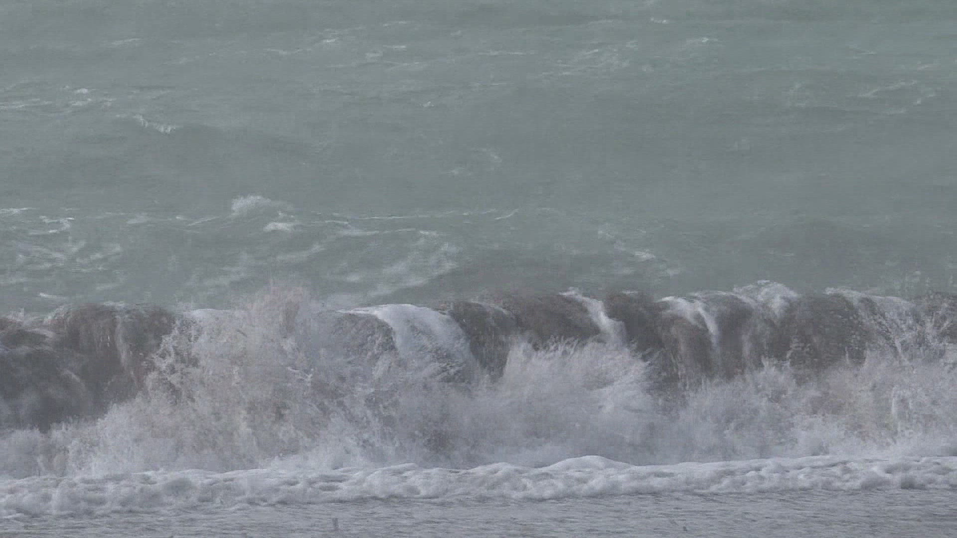 A stunning sunrise illuminates a cruise ship entering port early in the morning.