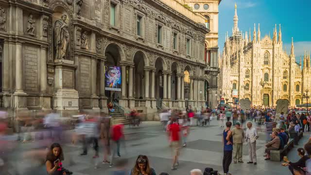 > morning milan duomo cathedral galleria square panorama 4k time lapse italy