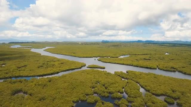 Aerial view of mangrove forest and river on the Siargao island. Mangrove jungles, trees, river. Mangrove landscape. Philippines. 4K video. Aerial footage