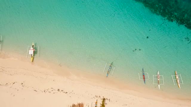 Aerial view of beautiful tropical island Daco with white sand beach. View of a nice tropical beach from the air. Beautiful sea, resort. Seascape: Ocean and beautiful beach paradise. Philippines. 4K video. Travel concept. Aerial footage.