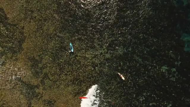 Aerial view surfers on the waves.Siargao, Philippines. Cloud 9.
