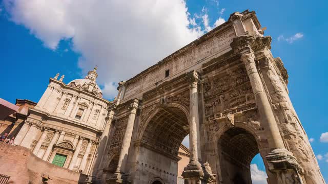 > summer day roman forum arch of septimius severus top view 4k time lapse rome italy