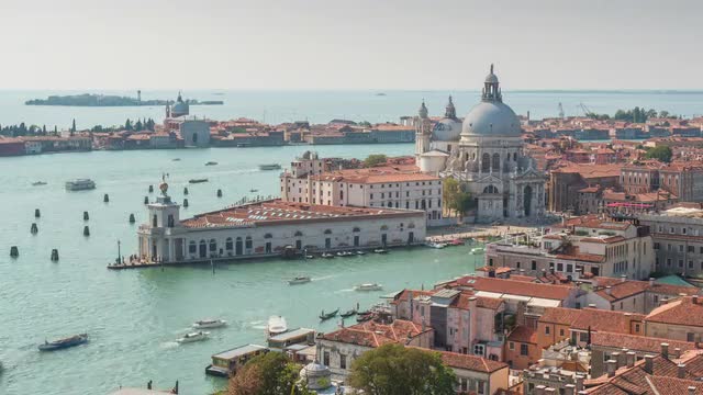 italy venice grand canal santa maria della salute basilica sunset panorama 4k time lapse