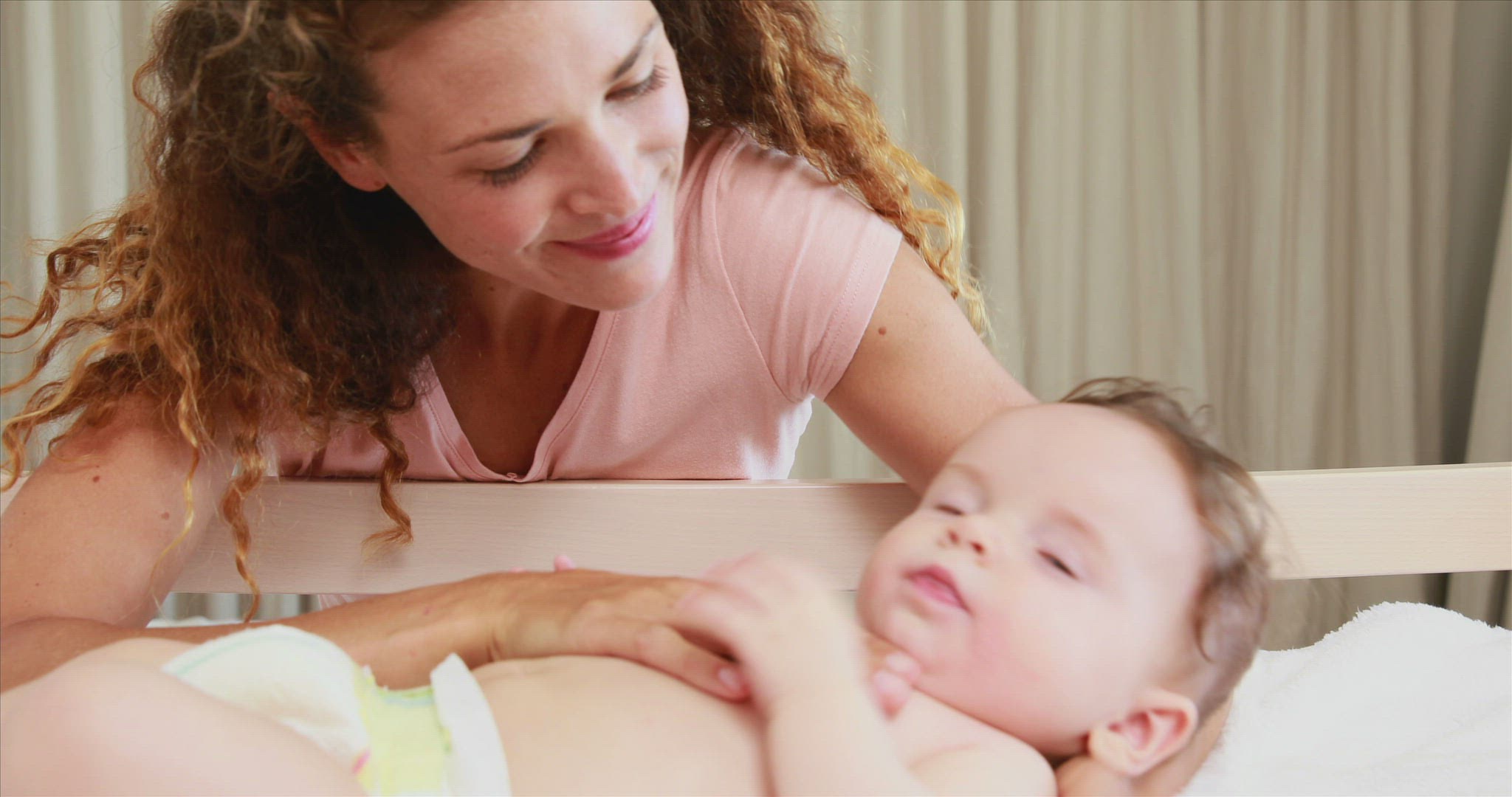 > Mom Changes the Diaper of a Small Baby