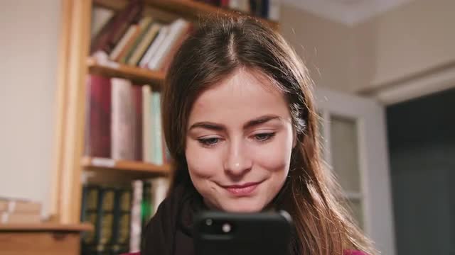 Smiling Female Using Phone