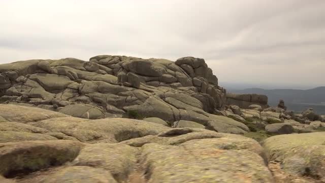 768250 - Tracking shot of woman walking by the edge of cliff