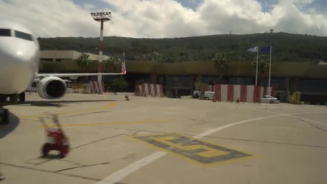 Prague, Czech Republic - May 2017: Airfield View. Plane Taking Off. Dolly shot