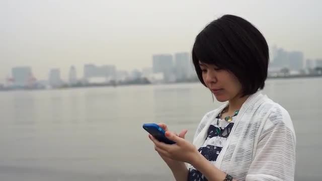 A lady using a smapthone outdoors. Mobile banking. Soft focus. Close-up shoot