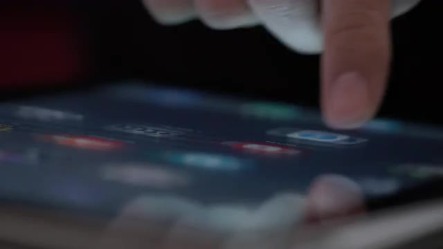 Close up of finger taping tablet.
