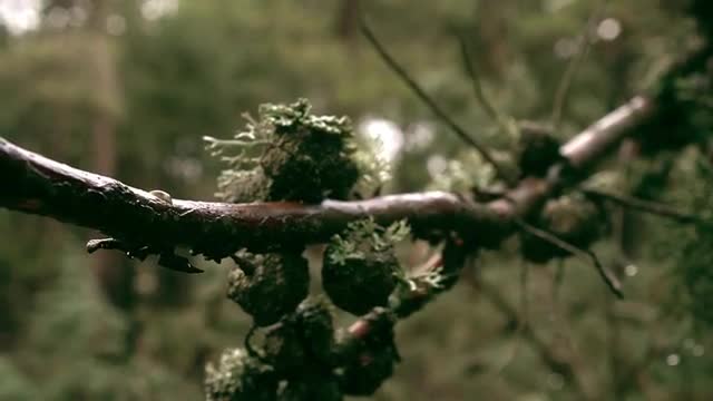 > Tracking shot of tree branch.