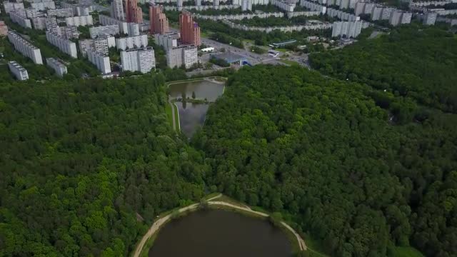 Lake in Moscow Russia Aerial View by Drone