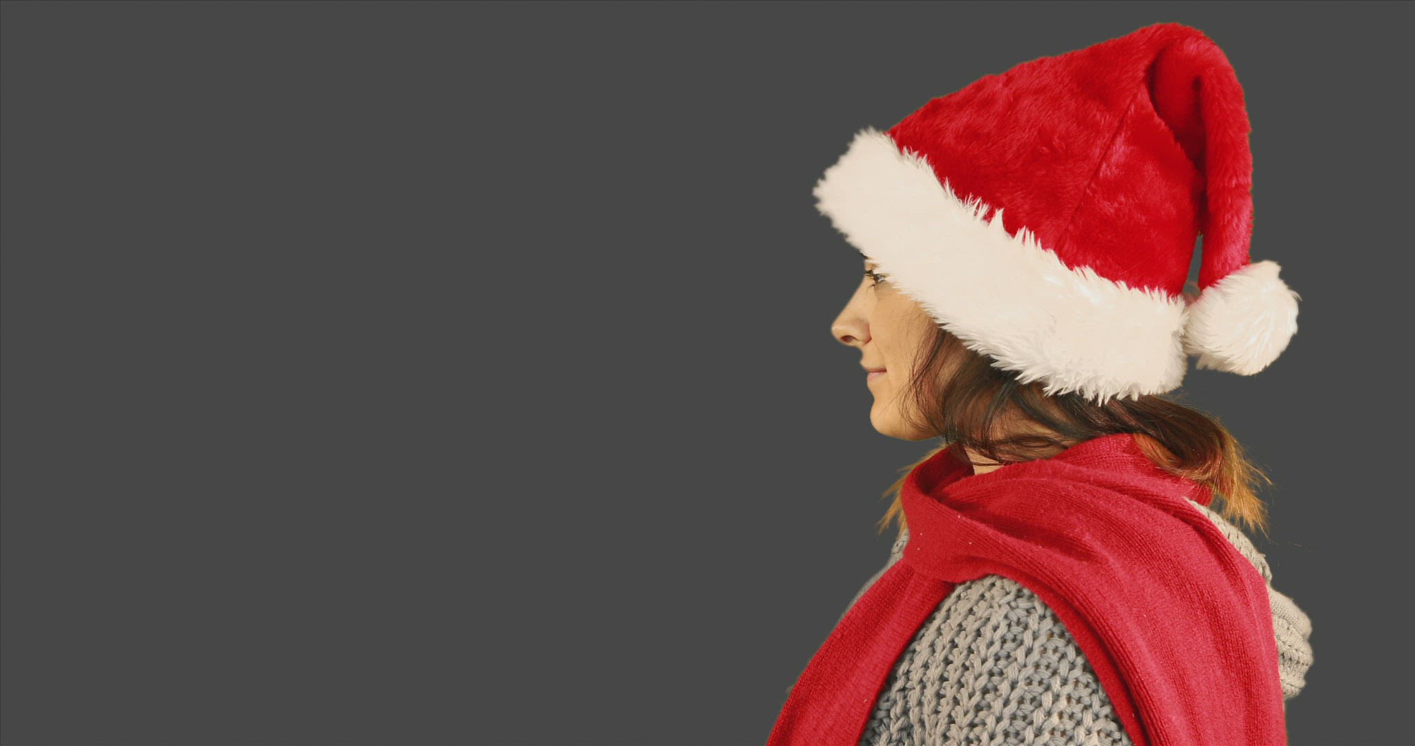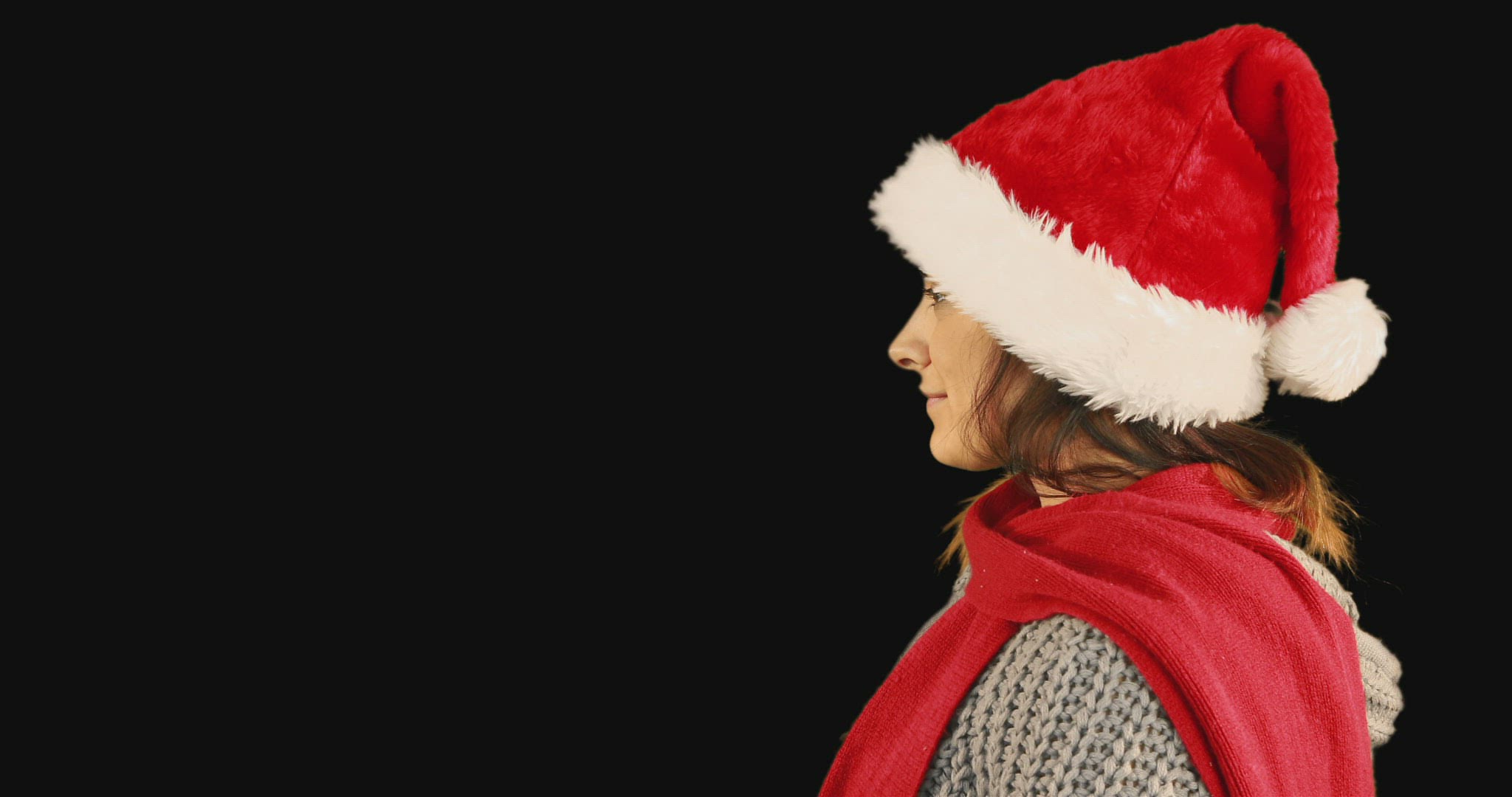 Adorable little boy playing dress up puts on a Santa Claus hat, laughing and happy