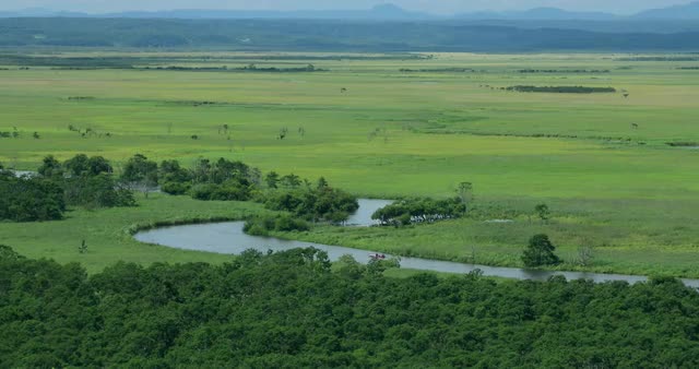 1102511 - Aerial footage of lake in the countryside, Yamanashi Prefecture, Japan