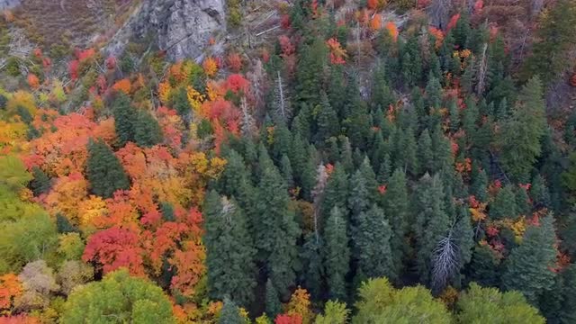 804614 - Rising aerial view looking down at colorful treetops during Autumn in Utah