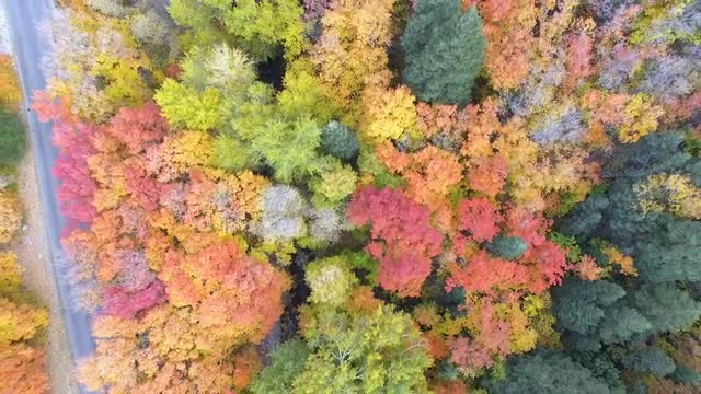 804606 - Aerial view looking down at colorful forest during Autumn