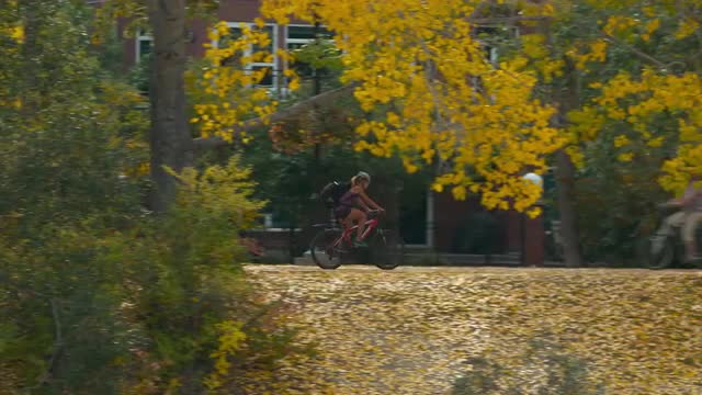 2168788 - maple tree in autumn - red leaves against blue sky with white clouds moving