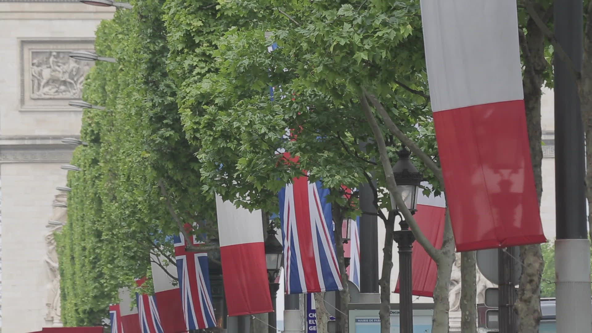 370371 - Time lapse off the French flag flying under the Arc de Triomphe in Paris, France