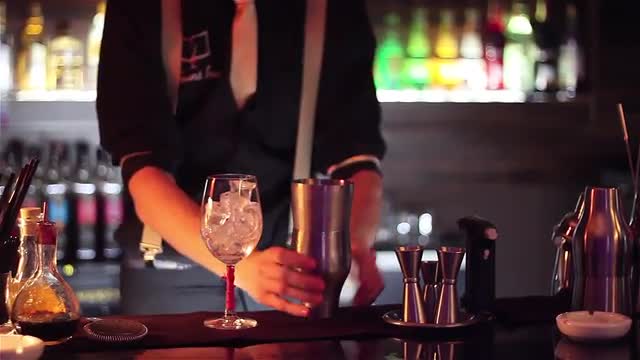498025 - Bartender preparing a cocktail.