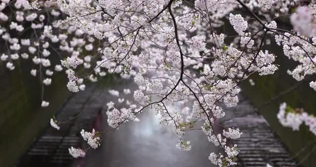 > Blooming cherry blossoms at Meguro river, Tokyo, Japan