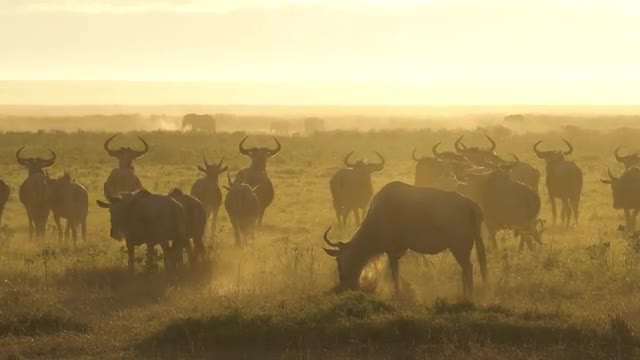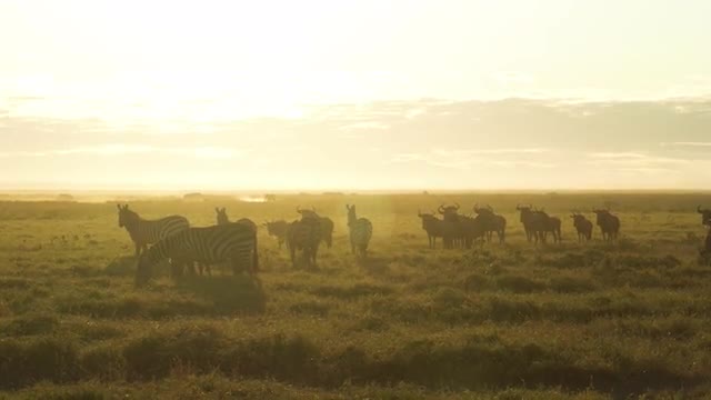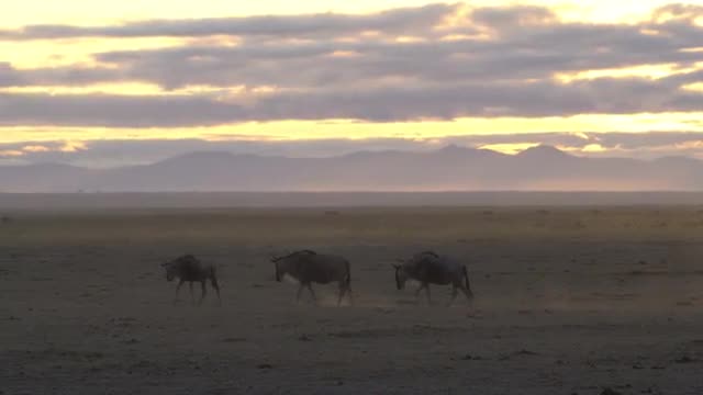774373 - Animals at sunset, Amboseli National Park, Kenya