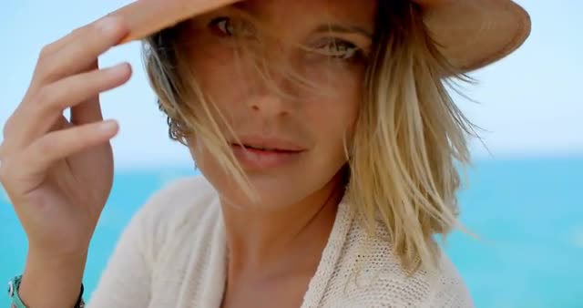 402618 - Blond Woman Wearing Hat by Breezy Ocean
