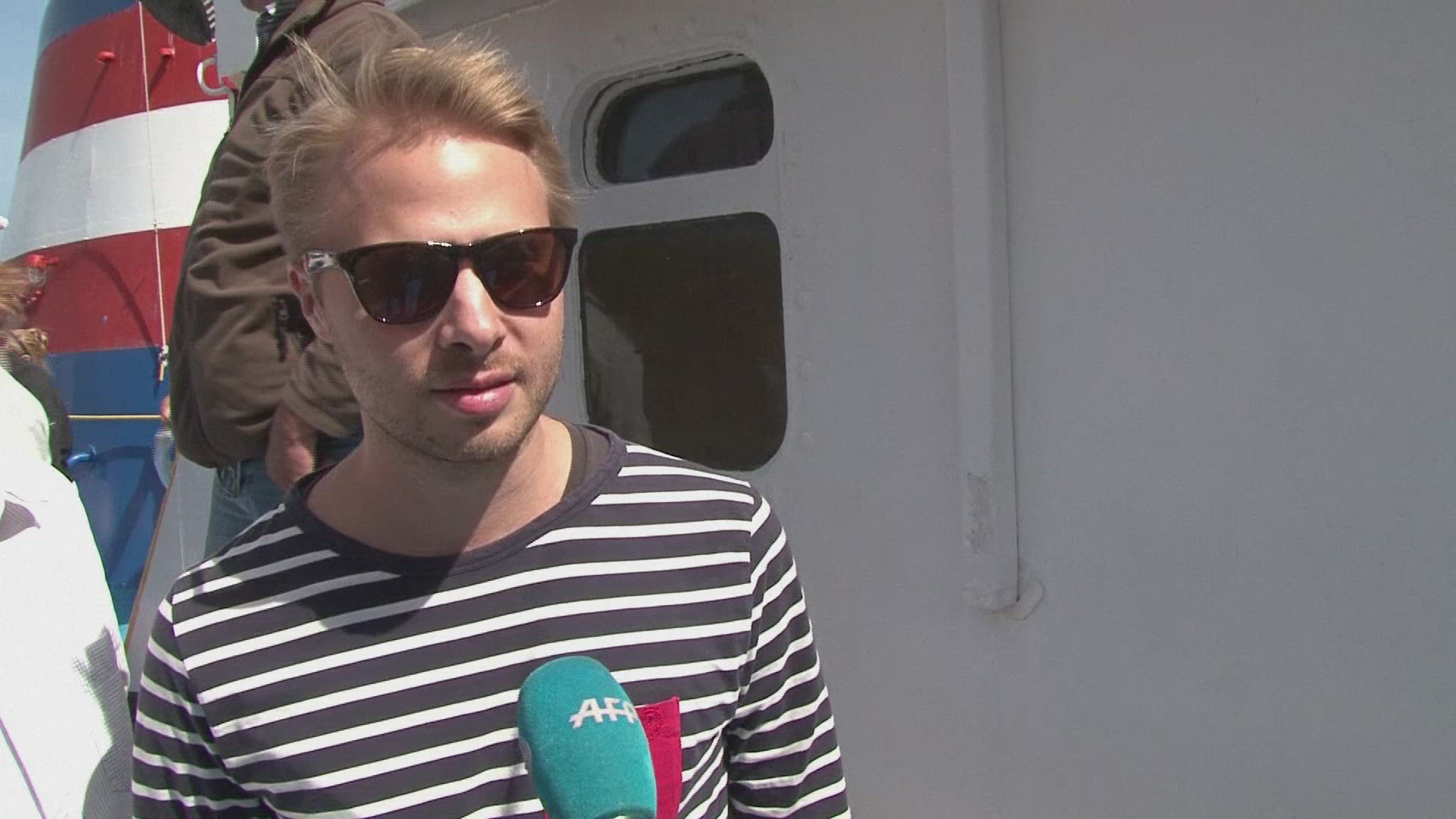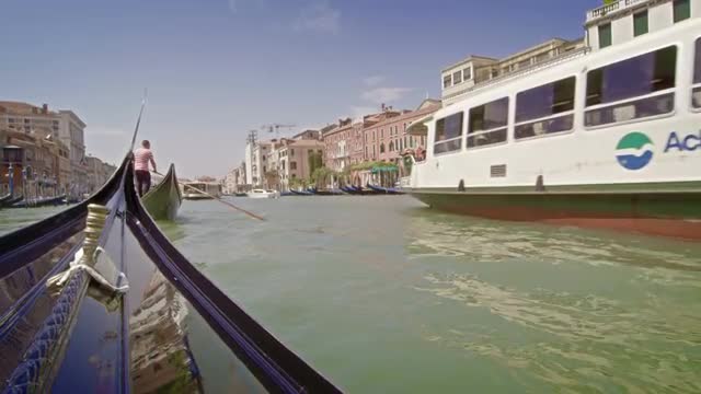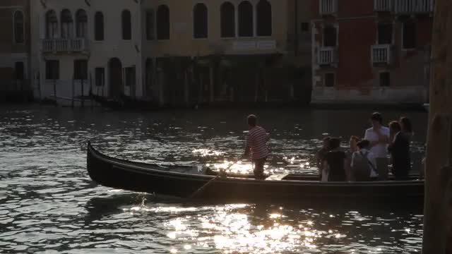 Venice, Italy - April 2, 2016: Tourists on the pier near the gondolas in Plaza San Marco on background of the Grand Canal and Saint Giorgio Maggiore Church. Tourists are photographed.