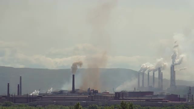 Pollution of the Atmosphere by an Industrial Enterprise. Pipes of a Large Factory Emit Colored Smoke