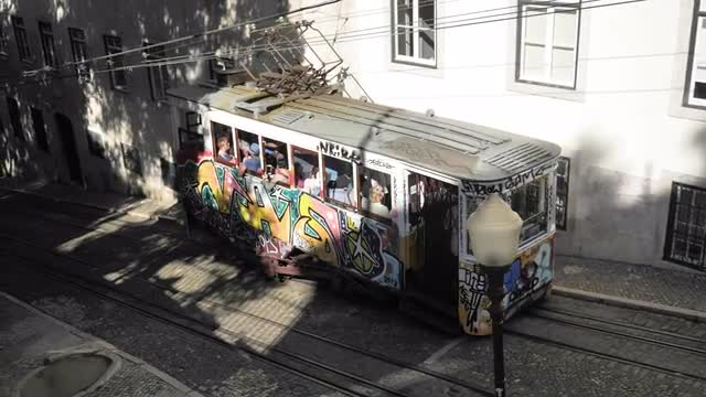 A typical Lisbon tram. Slowmotion footage in 4k quality.