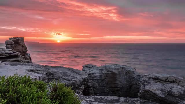 A girl walking on the rocks with a ocean in the background. Slowmotion footage in 4k quality.