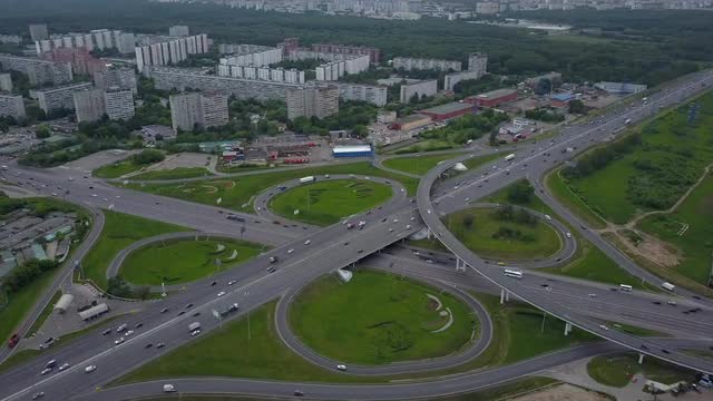 578789 - Aerial view of a car driving on a country road by a frozen lake