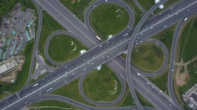 578789 - Aerial view of a car driving on a country road by a frozen lake