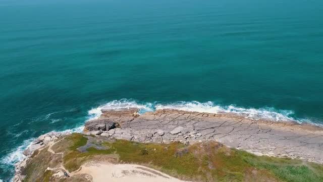 Aerial View Seascape with Waves on Rocky Beach, Portugal