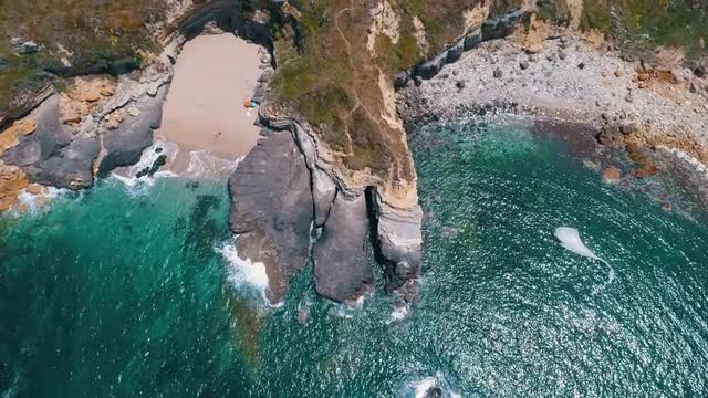 2239410 - Waves Lapping Against a Secluded Beach from a Bird's Eye View