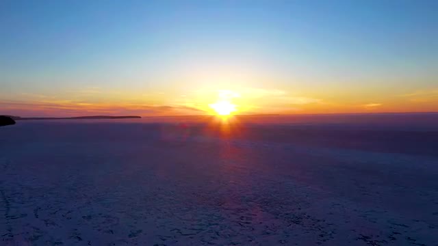 Aerial time-lapse of sunset over freeway with traffic below high rise buildings and mountains behind