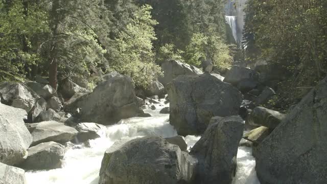 A captivating aerial view close to Nevada Fall on the Merced River. Yosemite National Park, California. USA. You first hike to Vernal Fall and then trek another 2 miles to reach the top.