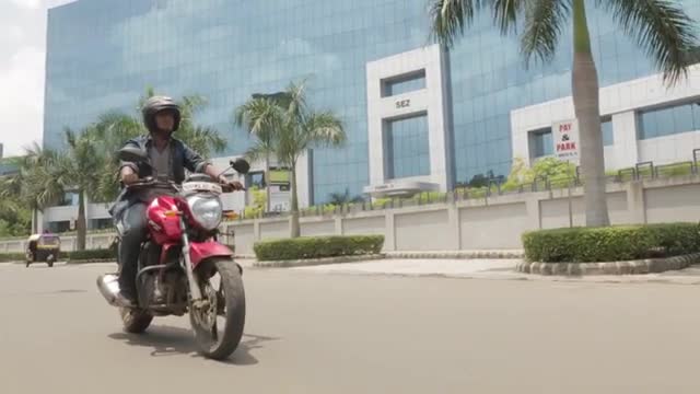 Riding motorbike through Australian field at dusk
