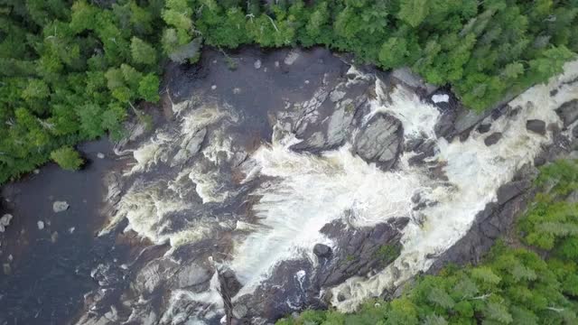 796682 - Rising aerial shot looking down at raging waterfall in a river