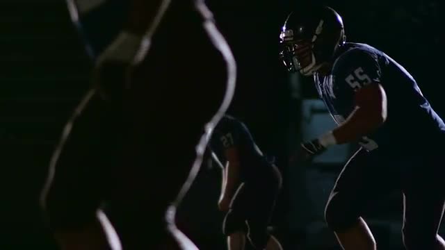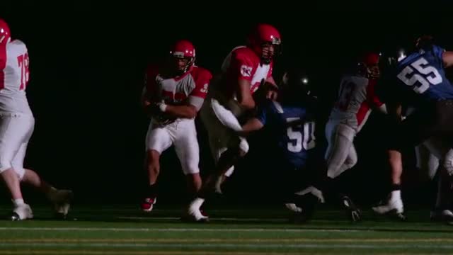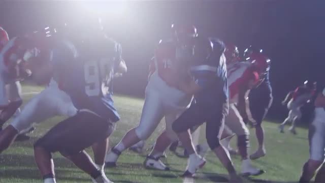 195486 - Close up stedicam shot of a football team in a huddle and rushing to the line