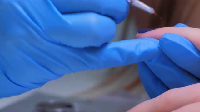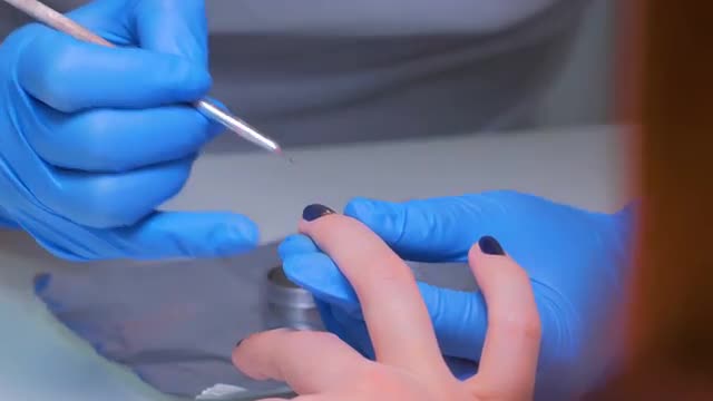 Manicurist make shape to the nail of a client with nail file. Beauty and nail care concept